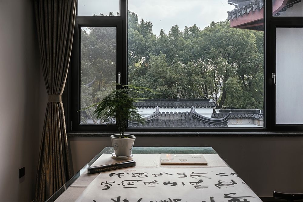 这座宅院园里,无论景观与建筑,均呈现出中式的传承之美,以此为基调,设计用最自然的姿态,凝练时光中的永恒,把江南传统文化意境中的远山淡影、恬淡安舒、虚怀澄明,以艺术设计的方式实现出来,人文精神浸润空间内外,追蹑时光的足迹更显意味悠长。